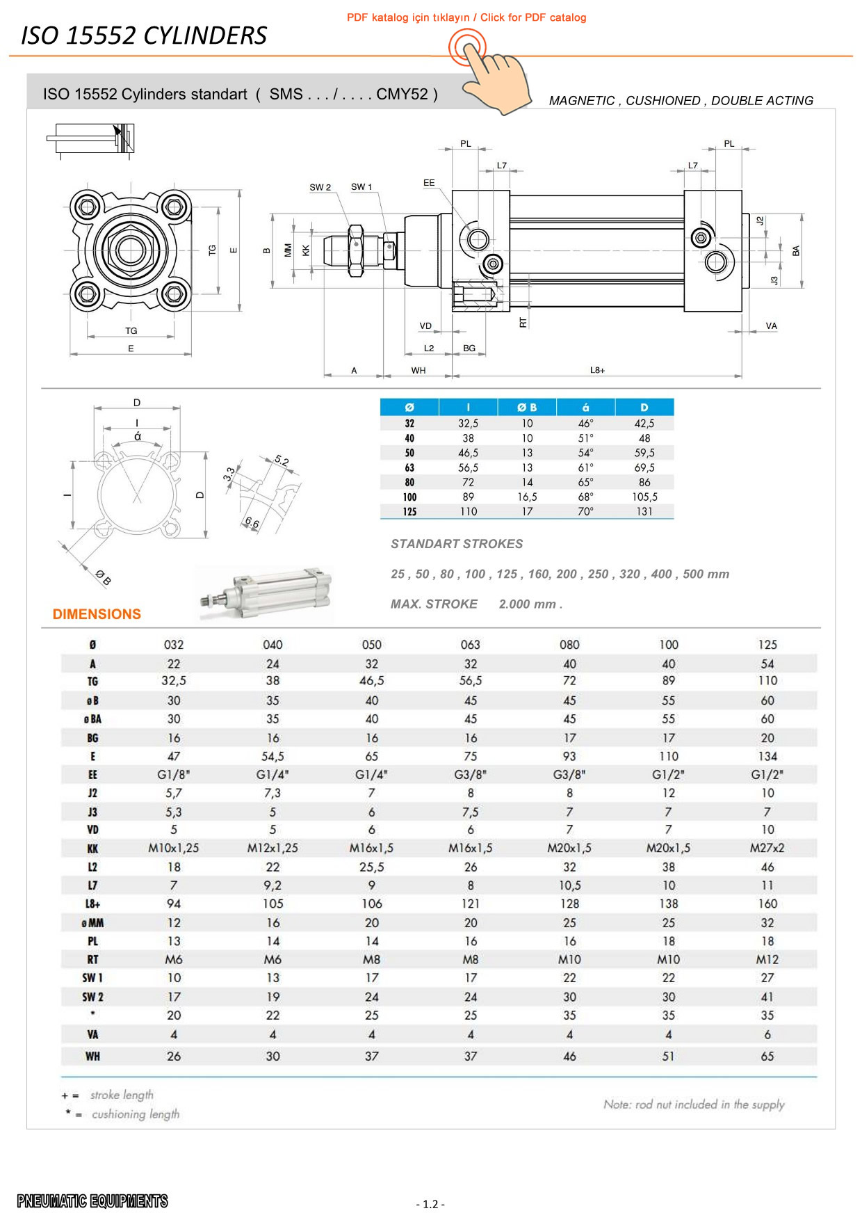Ürün standartı                           : ISO 15552 Standartı  & Saplamalı PNÖMATİK SİLİNDİRLER