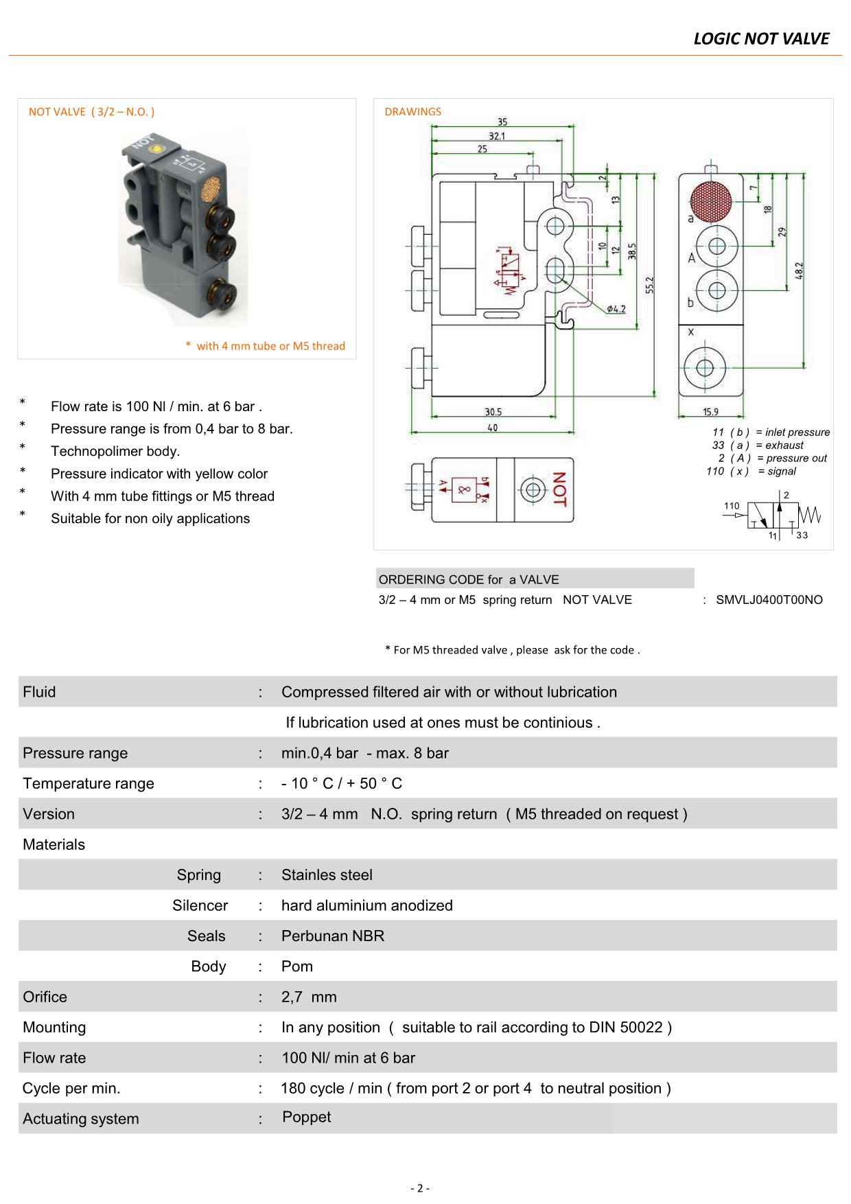 Pnömatik Lojik NOT Valf Özellikleri