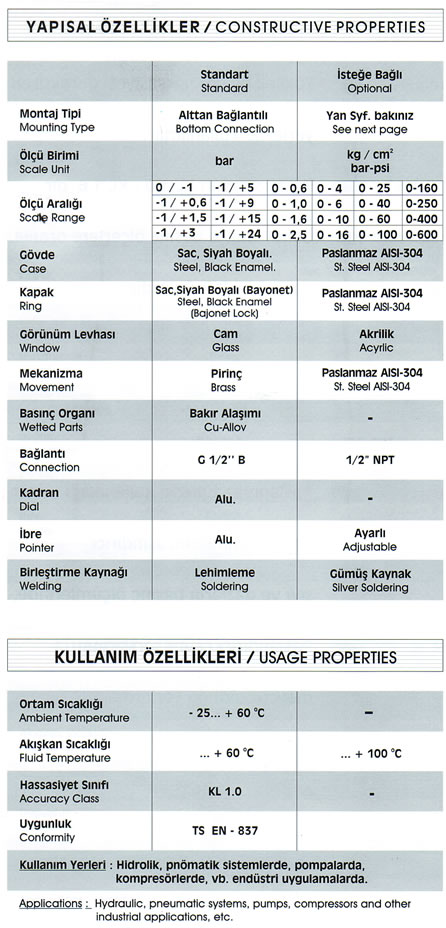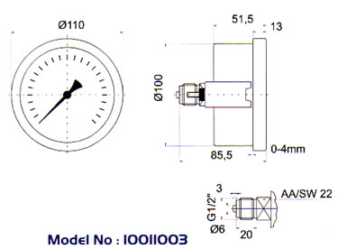 Ø 100 mm Hassas Standart Manometre (Arkadan Bağlantılı Panotip)