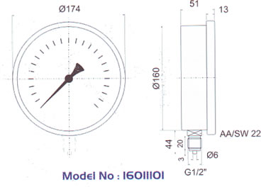 Ø 160 mm Hassas Paslanmaz Tip Basınç Ölçer (Alttan Bağlantılı)