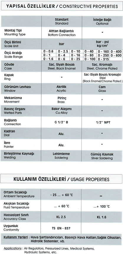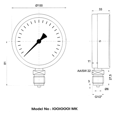 Ø100 mm Alttan Bağlantılı (Metal Kapaklı) Manometre