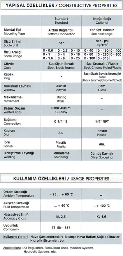 Ø63 mm Arkadan Bağlantılı Manometre
