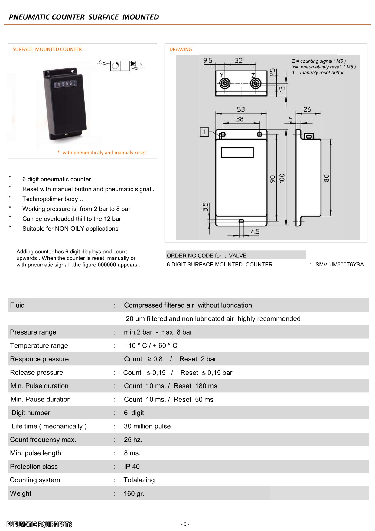Pnömatik sistemlerinizde doğru, güvenilir ve uzun ömürlü sayım ihtiyacı için yüzey bağlantılı 8 dijit resetli pnömatik sayaç ideal bir çözümdür.